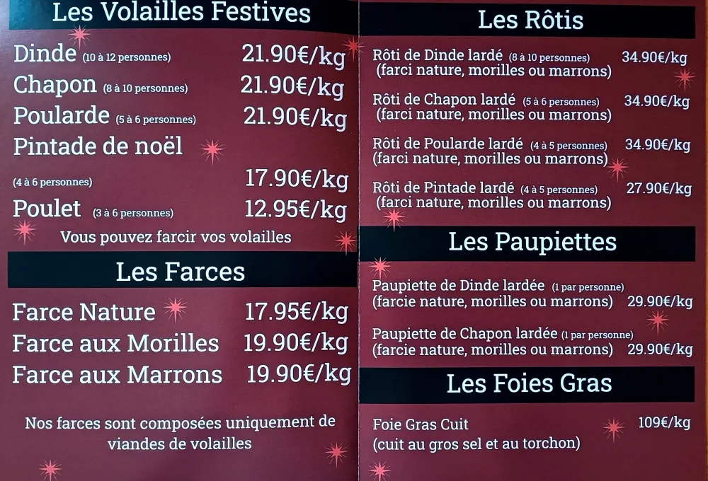 Veuillez trouver ci dessous tous nos produits pour cette fin d'année 2025, afin de régaler vos papilles.